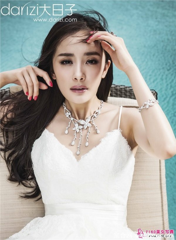 杨幂白纱造型演绎纯美新娘 简约设计展现清新魅力
