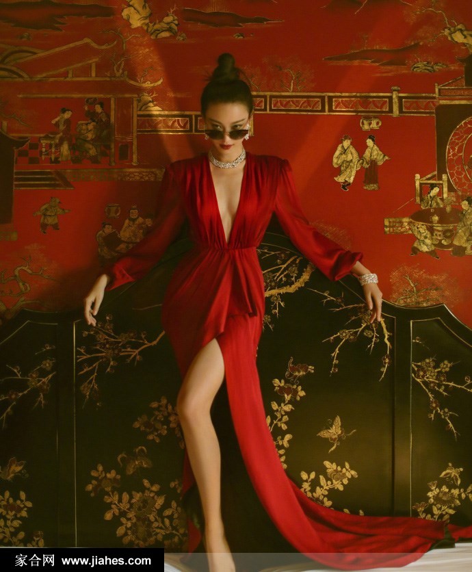 复古光影中的一抹绝色 倪妮红裙演绎如梦迷离
