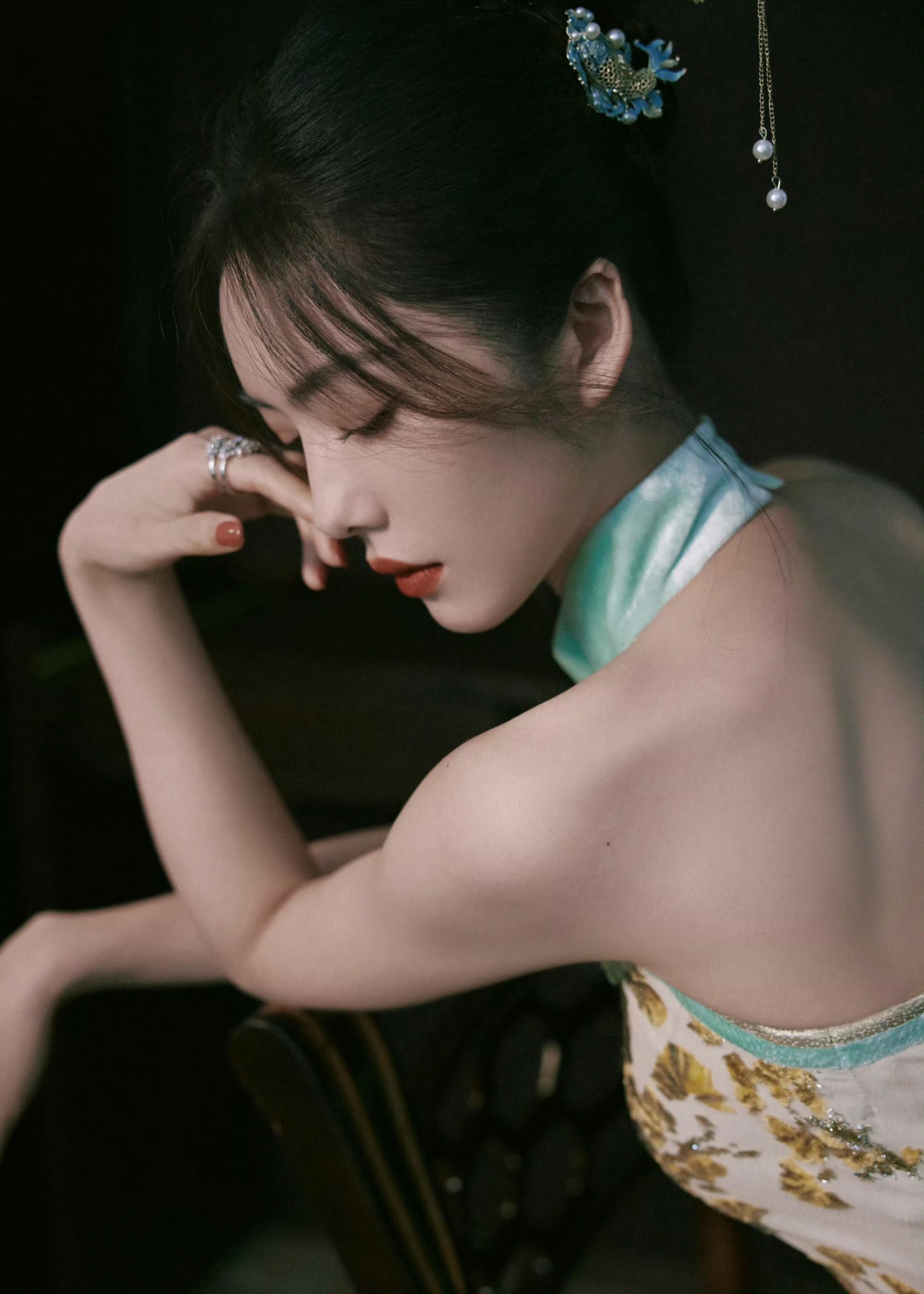 鎏金歲月間綻放的低語:楊幂復古抹胸禮服光影詩篇