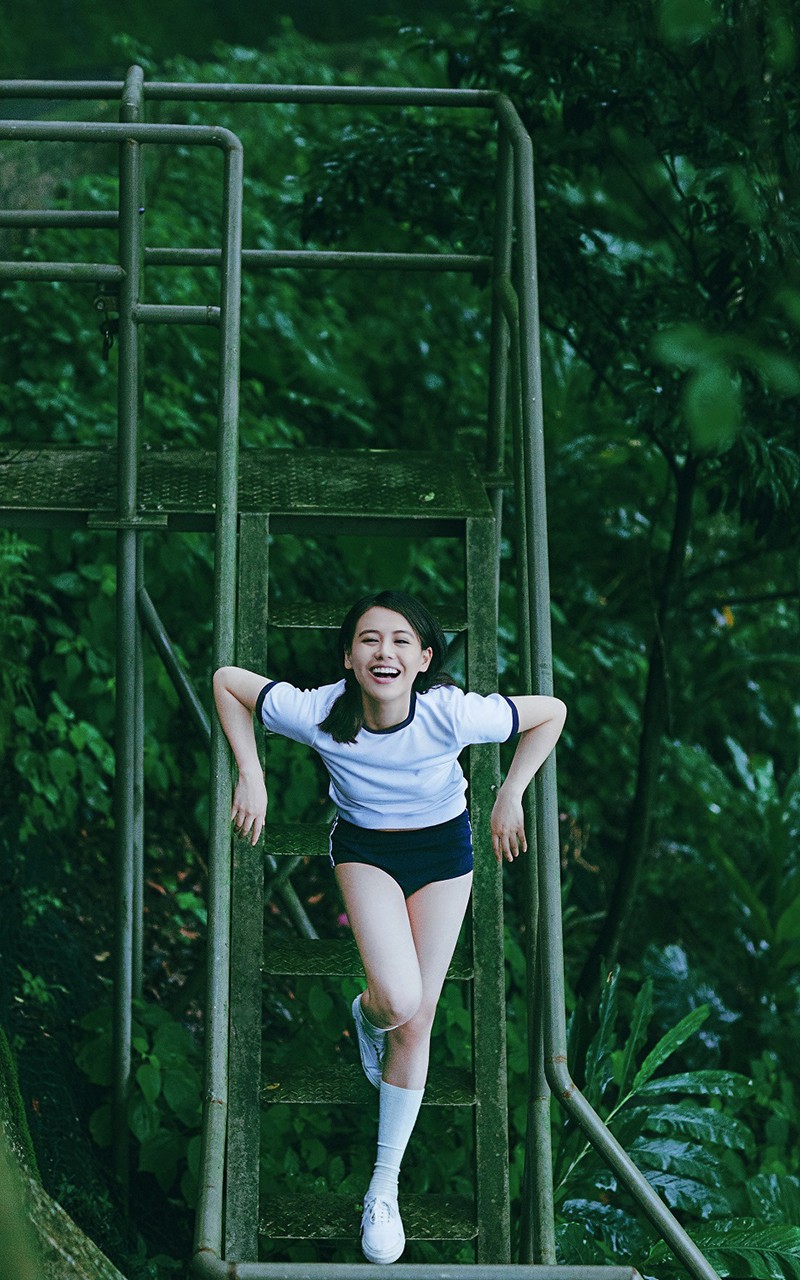 写真核心的服饰——体操服,是整套作品的点睛之笔。体操服本身带有强烈的校园感与运动感,它贴身的设计能够完美展现人体的流畅线条,同时又因其经典款式而显得纯粹、无邪。马思纯身着的简约款体操服,多为纯净的白色或浅色系,与她健康明亮的肤色相得益彰。服装的质感在镜头下显得柔软而富有弹性,随着她的姿态变化而产生细腻的褶皱,这些细节无声地诉说着动态的瞬间,为静态的图片注入了生命的韵律。