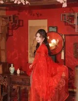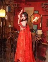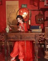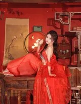 从美学角度分析,这组写真的成功在于平衡了动态与静态。舞蹈是流动的艺术,但照片定格了最具表现力的瞬间,例如舞娘跳跃时的悬浮感,或转身时的柔美线条。红色作为主色调,在画面中形成强烈视觉冲击,同时与肤色、背景形成和谐对比。每张照片的构图都经过精心设计,遵循黄金比例或对称原则,增强了艺术感染力。例如,一张照片中舞娘侧卧,红衣铺陈如花瓣,寓意宁静与优雅;另一张中她向前迈步,动作连贯如故事叙述。