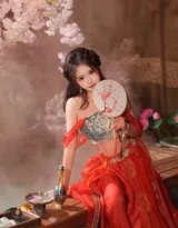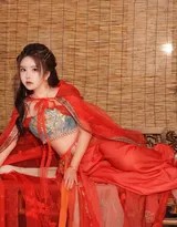 波斯舞蹈的特点在于其柔美与力量的完美结合。舞者通过细腻的手部动作、流畅的腰肢摆动和轻盈的步态,营造出一种神秘而迷人的氛围。在这组写真中,舞娘的红衣古装设计精致,常以丝绸或薄纱制成,缀以金色刺绣和珠饰,既凸显了女性的曲线美,又保留了传统服饰的华贵感。红色不仅是视觉的焦点,更隐喻着波斯文化中对生命与热情的赞颂。舞蹈动作如“举步轻盈”源自波斯古典舞的基础步伐,强调平衡与优雅,而“妖娆”则体现在舞者眼神与姿态的互动中,仿佛在讲述一段古老传说。