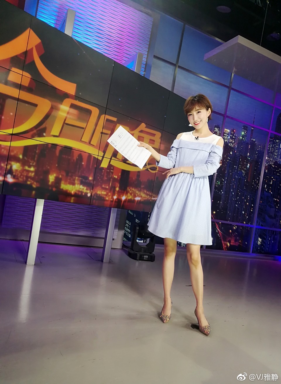 在近日一场备受瞩目的活动现场,知名主持人佘雅静以一袭精致装扮惊艳亮相,成为全场焦点。她身着一件设计简约而不失时尚感的超短裙,完美勾勒出窈窕身姿,搭配光泽细腻的黑色丝袜,更显腿部线条的修长与优美。脚踩一双经典款式的高跟鞋,每一步都散发出从容与自信,将专业主持人的舞台风范与女性独有的柔美气质融合得恰到好处。