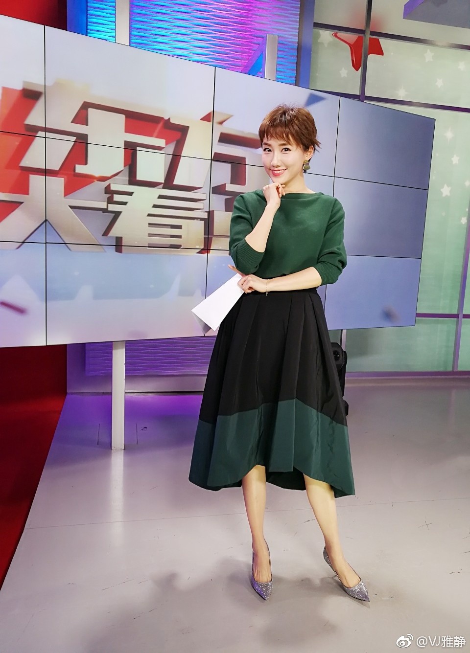 仔细观察这些现场照片,还能发现许多值得品味的细节:她手腕上搭配的精致配饰在灯光下若隐若现,发型经过精心打理既保持了一整天的整齐又不失灵动,妆容更是衬托出她立体的五官和良好的肌肤状态。这些细节共同构建了一个完整、专业的荧幕形象,也体现了一个优秀主持人对自我形象的严格管理。