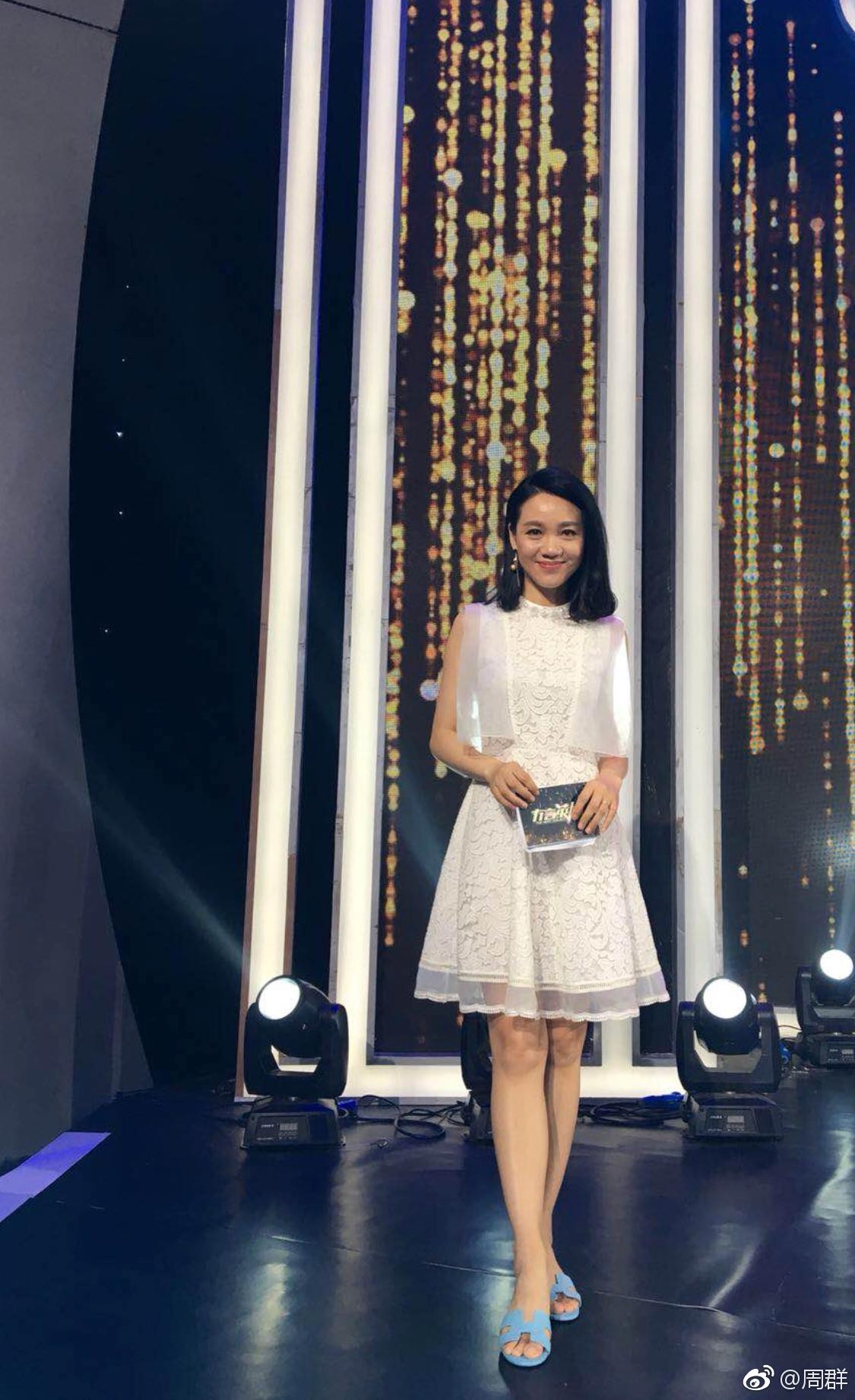 除了外在的形象,照片更捕捉到了周群在主持现场的工作瞬间。其中一张,她正手持话筒,侧身专注地聆听着什么,表情认真而投入。另一张,她与现场工作人员进行交流,脸上带着温和的笑容,展现出良好的沟通状态。这些瞬间共同勾勒出一位专业主持人在台前幕后所必备的素养:专注、沟通与协作。周群的主持风格向来以考虑细致、能照顾到嘉宾感受而著称,这些定格画面正是她这种职业精神的生动体现。她在工作中不仅需要把控流程、调动气氛,还需要时刻关注现场的每一个细节,确保节目顺利进行。