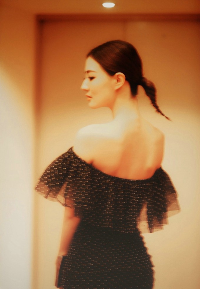 此次活动,徐璐选择了一袭设计感十足的黑色一字肩小礼服。这款礼服巧妙地展露出她优美的肩颈线条与精致的锁骨,而背后领口的薄纱点缀,则如云雾般朦胧,不仅为整体造型增添了轻盈浪漫的仙美气息,更若隐若现地勾勒出迷人的背部曲线,被媒体形容为再现了优美的“蝴蝶骨”。这种含蓄中带有小性感的设计,与她当时正悄然转变的风格不谋而合,让人看到了区别于往日清新少女形象的徐璐。