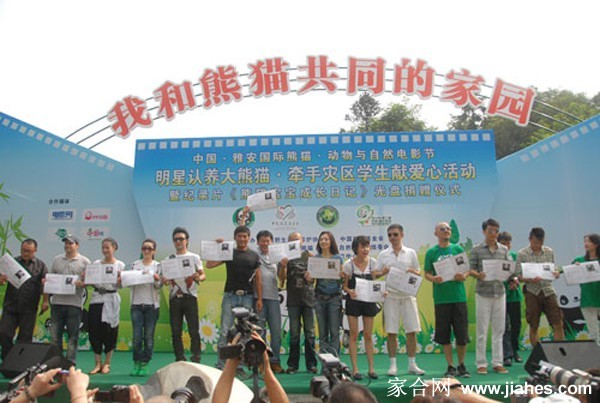 2010年8月7日,四川雅安碧峰峡熊猫基地迎来了一批特殊的客人。第三届雅安动物与自然电影节期间,包括秦海璐、焦恩俊、周海媚、王小帅、伍仕贤、姚橹、汪峰、庹宗华等来自两岸三地的演艺明星齐聚于此。他们此行的目的并非宣传新作,而是为了参与一项充满意义的公益活动——认养大熊猫,并与“5·12”地震灾区的孩子们一同亲近这些珍稀的国宝。