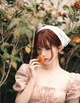 光影在这组作品中扮演了魔术师的角色。明媚的春日阳光并非生硬直射,而是化作了细腻的画笔。它穿过花瓣的缝隙,在她柔顺的棕色长发上跳跃出迷人的光泽;它轻轻抚摸她的脸颊,让本就“肤若凝脂”的肌肤更显通透红润,健康而充满活力。这种光影处理,不仅突显了她的五官优势和“完美的下颌线”,更营造出一种温暖、梦幻、充满希望的春日氛围,让观众仿佛也能感受到照片里的温度与香气。