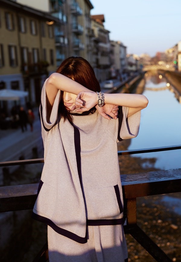 在造型与姿态上,王丽坤也完美践行了“少即是多”的美学原则。她摒弃了华丽的礼服与精致的妆发,选择简约舒适的日常服饰,甚至赤足立于湖畔,尽显随性灵动。或静静伫立凝视远方,或悠然坐于水边若有所思,或俏皮地轻触湖水。这些姿态没有丝毫造作,全然是内心宁静状态的外化,与她生活中喜爱瑜伽、阅读、漫步自然,享受独处的慢节奏个性一脉相承。正是这份内心的从容与对生活的热爱,让她在镜头前能够如此松弛而自信,每一个瞬间都散发着“岁月静好”的感染力。