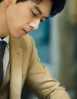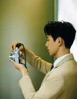 光影在这组写真中扮演了重要角色。摄影师巧妙利用自然光与影棚灯光,在他棱角分明的脸庞上雕刻出明暗对比,使得他的眼神更加深邃有力。一些侧光拍摄的镜头,不仅强化了西装的质感纹理,更烘托出一种故事氛围,仿佛镜头捕捉的是某位商业巨子在高强度工作间隙的沉思时刻,而非单纯的摆拍。