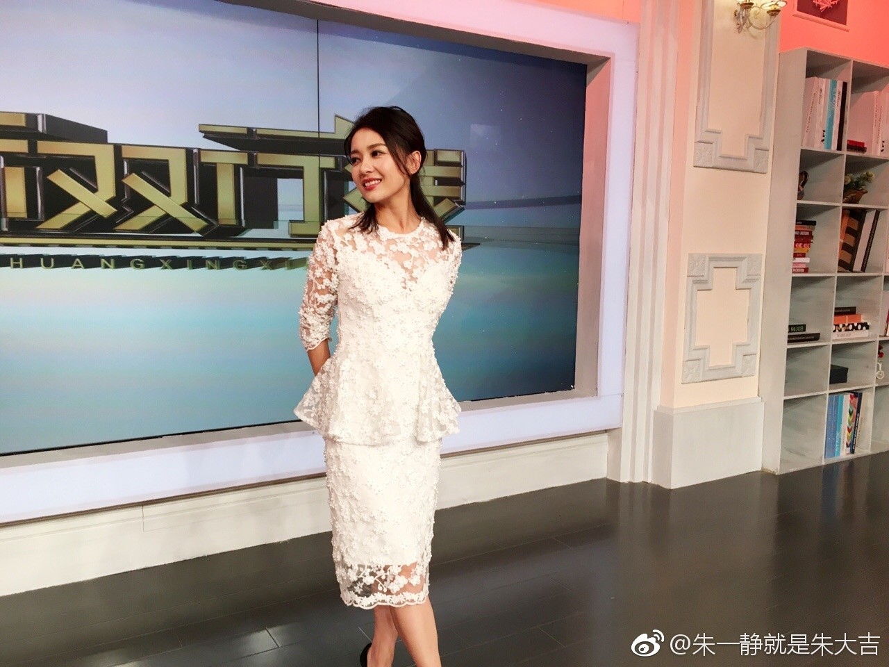 主持人朱一静白色蕾丝造型演绎优雅与知性