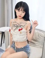 然而,穿搭的选择却为这份纯真注入了截然不同的生命力。紧身吊带衣毫不吝啬地展现了肩颈与锁骨的精致线条,而高腰牛仔短裤则以经典的剪裁,最大限度地延伸了腿部视觉比例,自信地展现出“美腿翘臀”的健身成果。这种“上紧下短”的搭配法则,在视觉上完美塑造出高挑挺拔的S型曲线。它打破了“萝莉”风格固有的柔美框架,融入了健康、自信的现代性感,形成一种既甜美又火辣,既天真又大胆的复合魅力。
